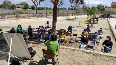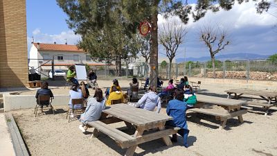 Per arrodonir el matí els i les mestres vam poder fer una tertúlia juntament amb la parella artística sota l’ombra dels arbres.