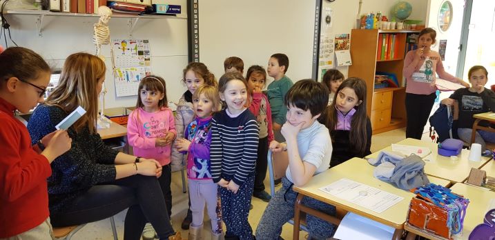 PD: Aquesta setmana vam rebre una visita molt especial, i es que els alumnes de P5 també estan treballant el cos i l’Almudena els va dir que a la classe de la seva germana Isabel hi havia un esquelet, així que van pujar a descobrir-ho i els i vàrem explicar tot allò que estem aprenent.