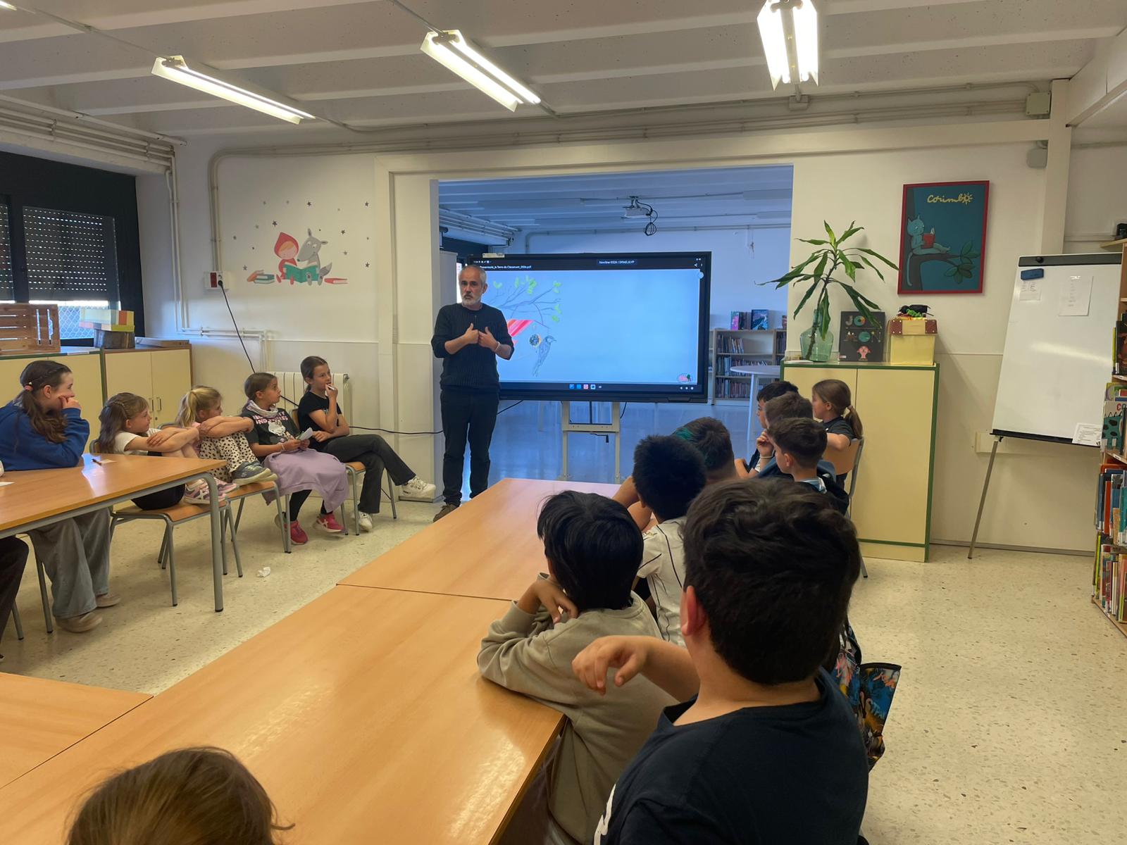 L’alumnat de Cicle Mitjà i els nens i nenes de 2n de primària van poder compartir una estona amb ell, fer-li preguntes i descobrir com neixen els seus llibres. Va ser una trobada molt propera i participativa, on no van faltar les rialles i la curiositat!