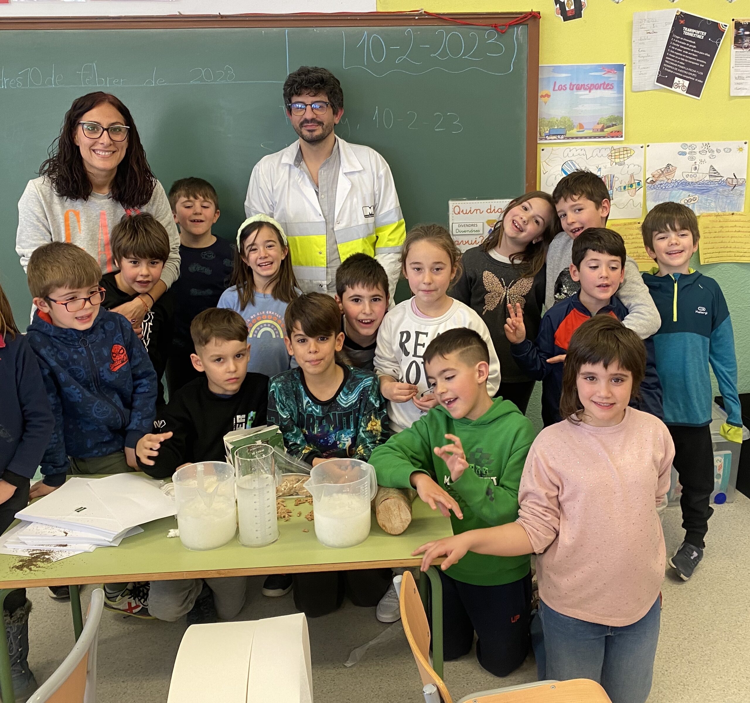 Els nens i nenes de Cicle Inicial hem après tot el procés de fabricació del paper. El David, l’espacialista, ens ho ha explicat molt bé i ens ha portat un munt de material per poder elaborar nosaltres mateixos el nostre propi paper i així posar fi al mini projecte, “Els canvis de les primeres matèries”, que vam començar amb el procés del cava i de la xocolata.