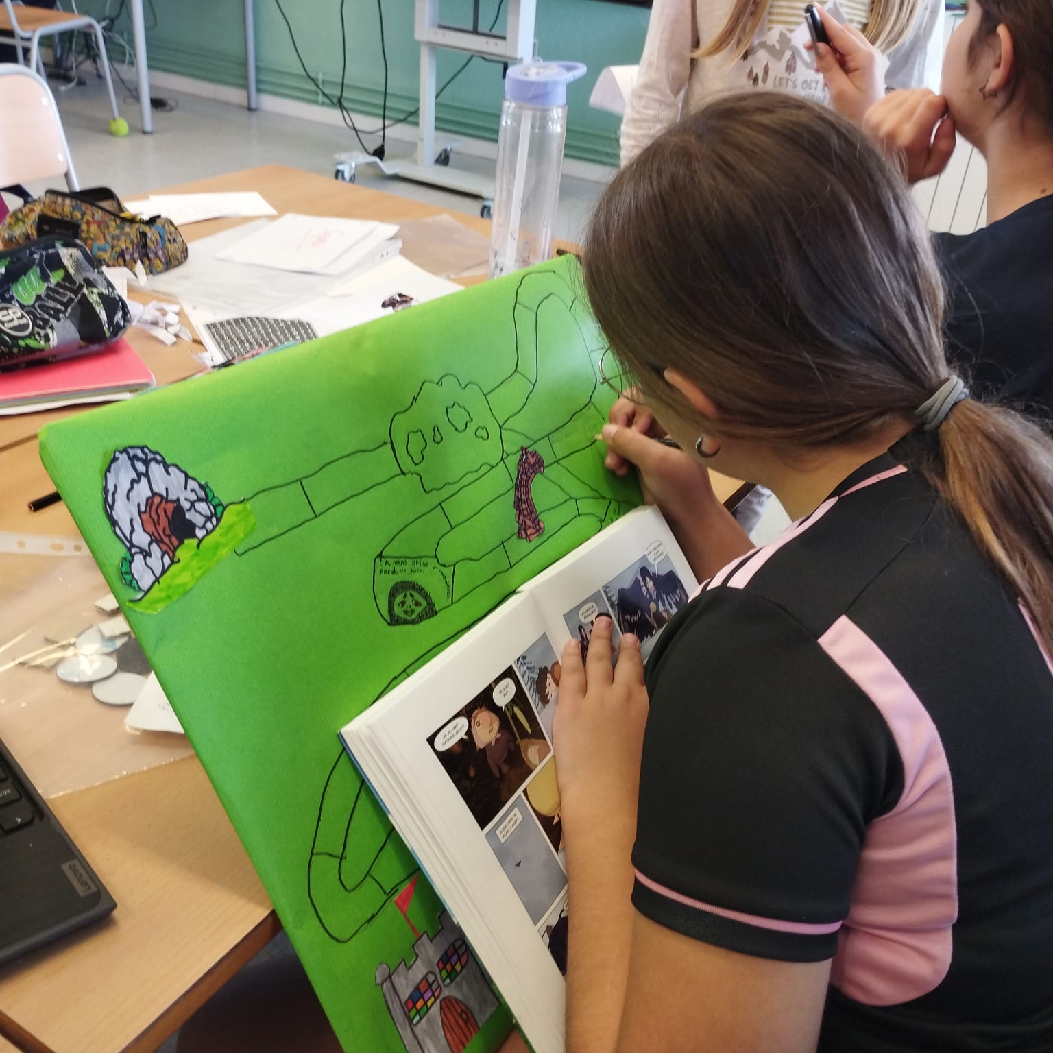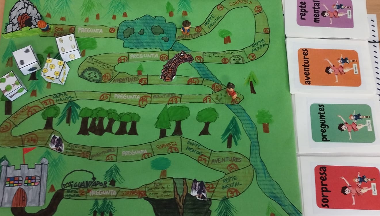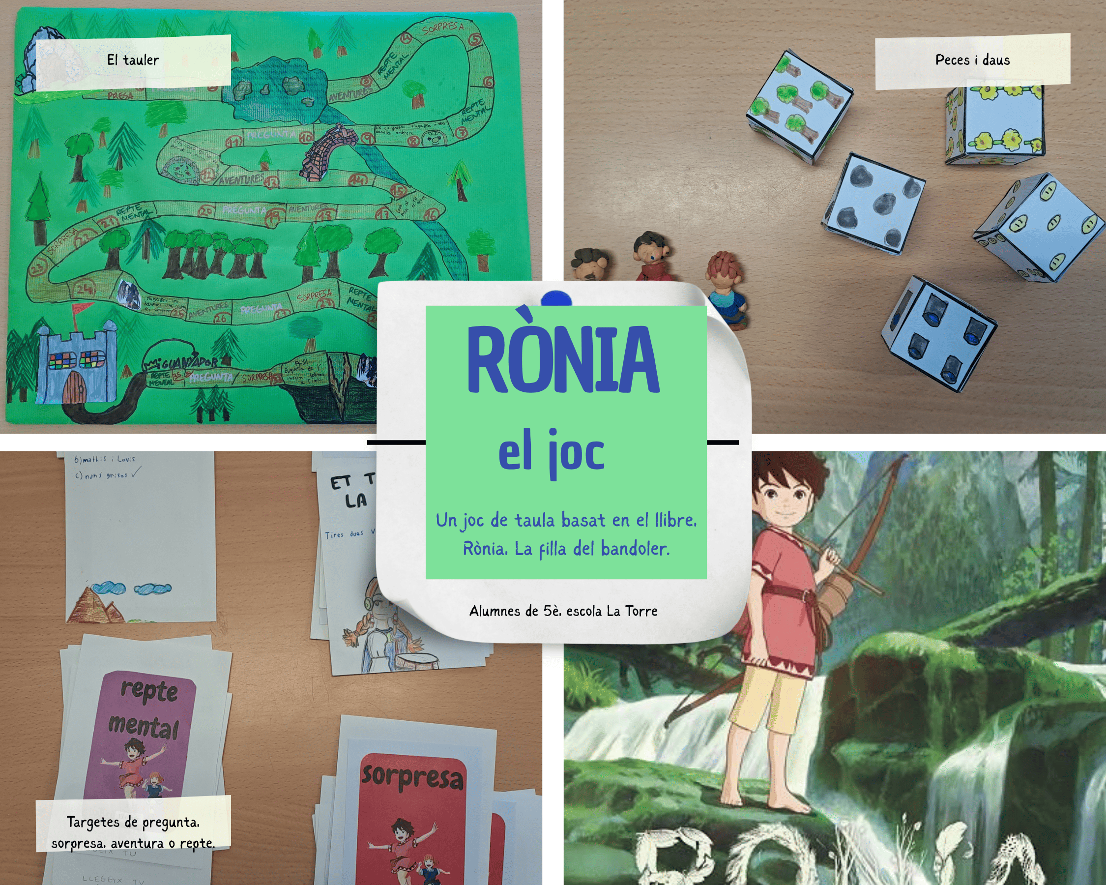 En el cas de Rònia. La filla del bandoler, de Astrid Lindgren, l’alumnat de 5è ha dissenyat i elaborat un joc de taula inspirat en la història llegida. A partir dels personatges, els escenaris i els esdeveniments més destacats del llibre, han creat un joc original que permet reviure l’aventura d’una manera lúdica i participativa.