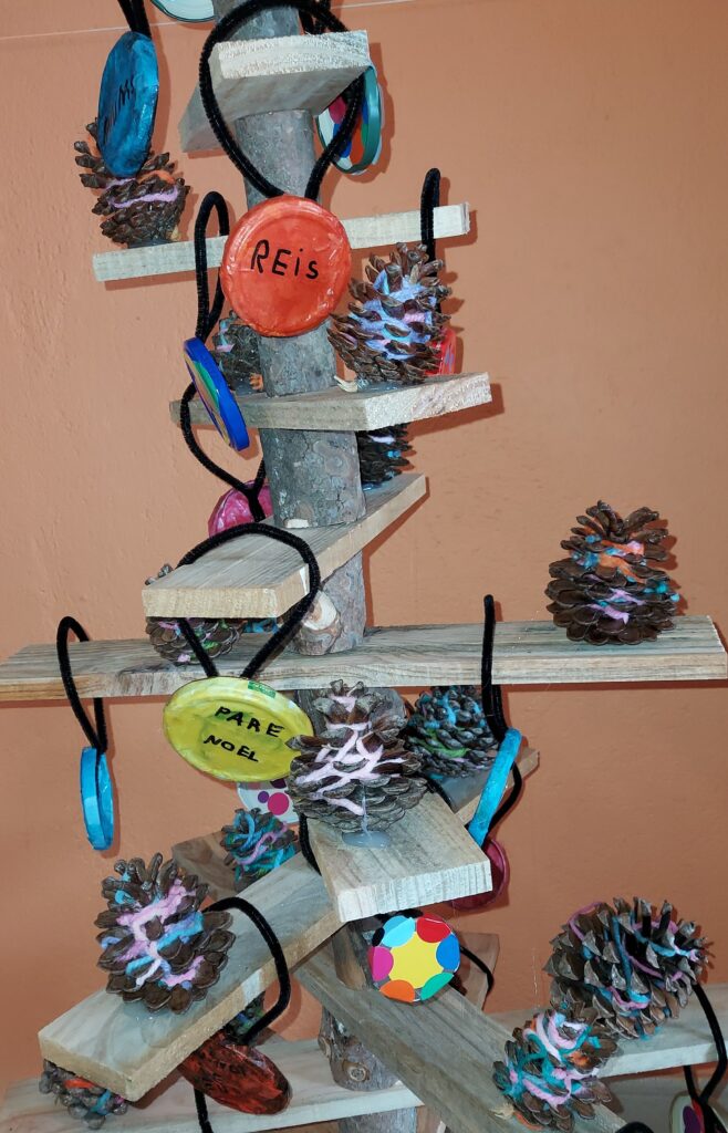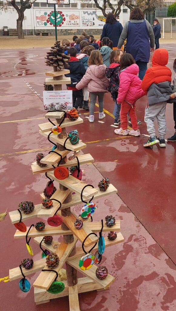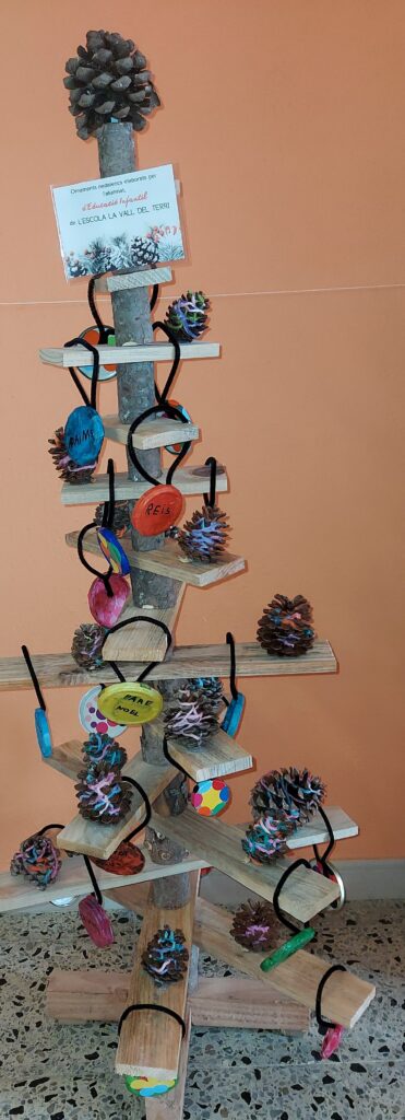 L’any passat vam participar en la decoració d’uns arbres de Nadal de Banyoles i, enguany, ens fa molta il·lusió, poder engalanar-ne uns del nostre poble! Un grup d’avis molt trempats ha fet uns arbres de fusta molt bonics i artesanals i, nosaltres, els nens i nenes de l’escola, hem elaborat elements de decoratius per tal de poder-los ornamentar. Una vegada més, grans i petits, hem unit esforços i talent i el resultat ha quedat espectacular! Us avancem que, els d’I3, I4 i I5, hem utilitzat taps i pinyes!