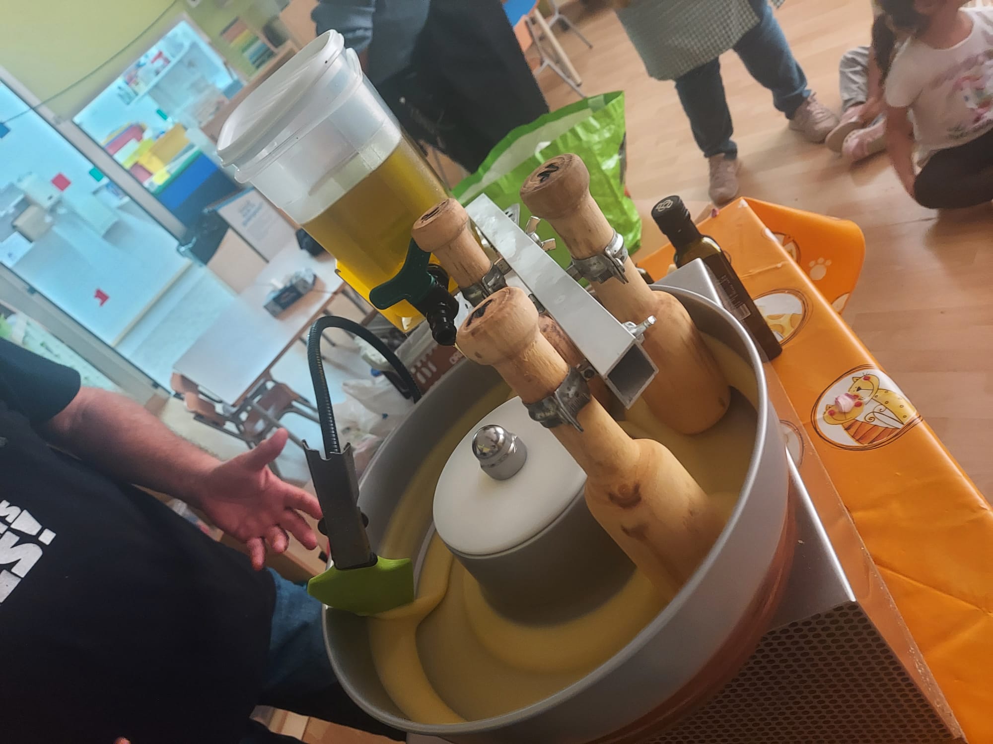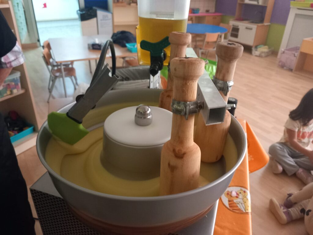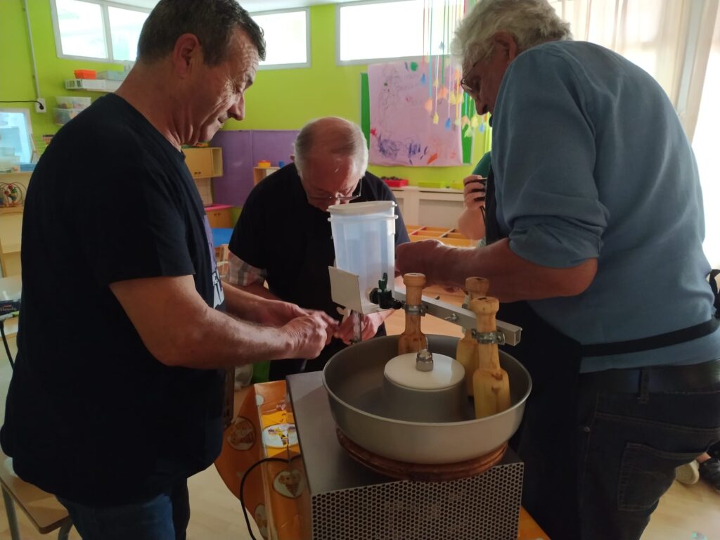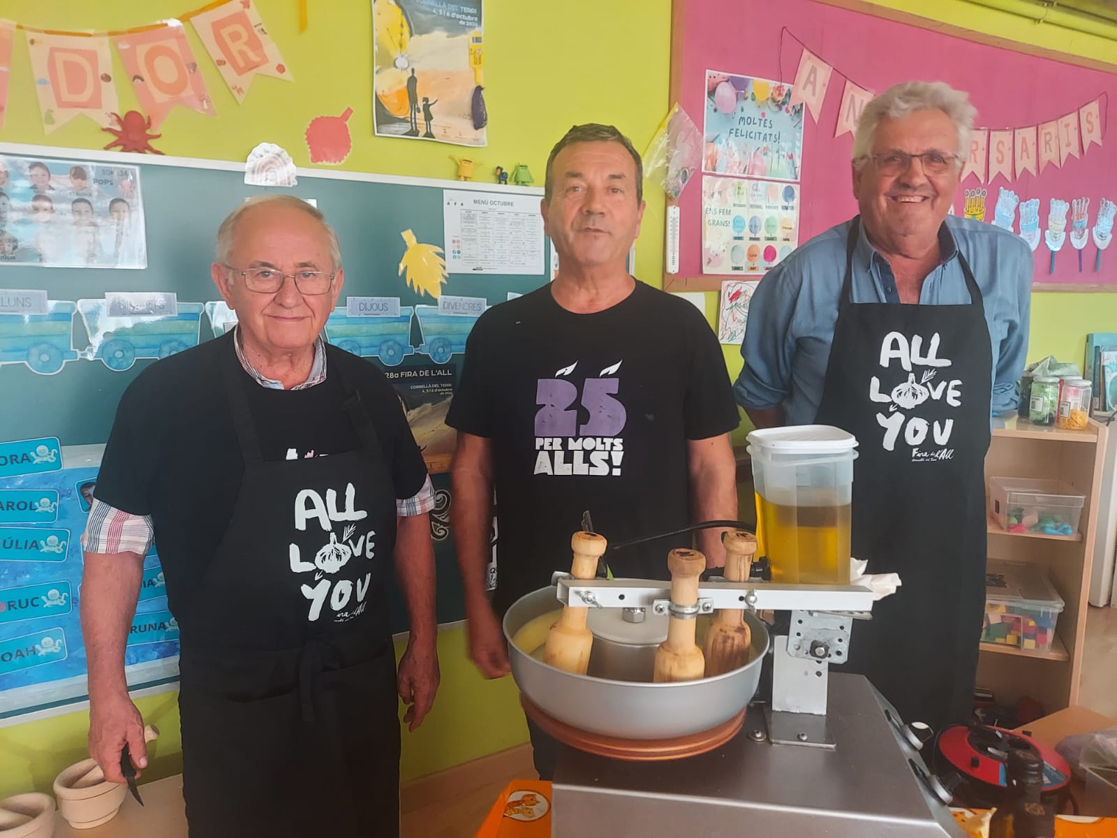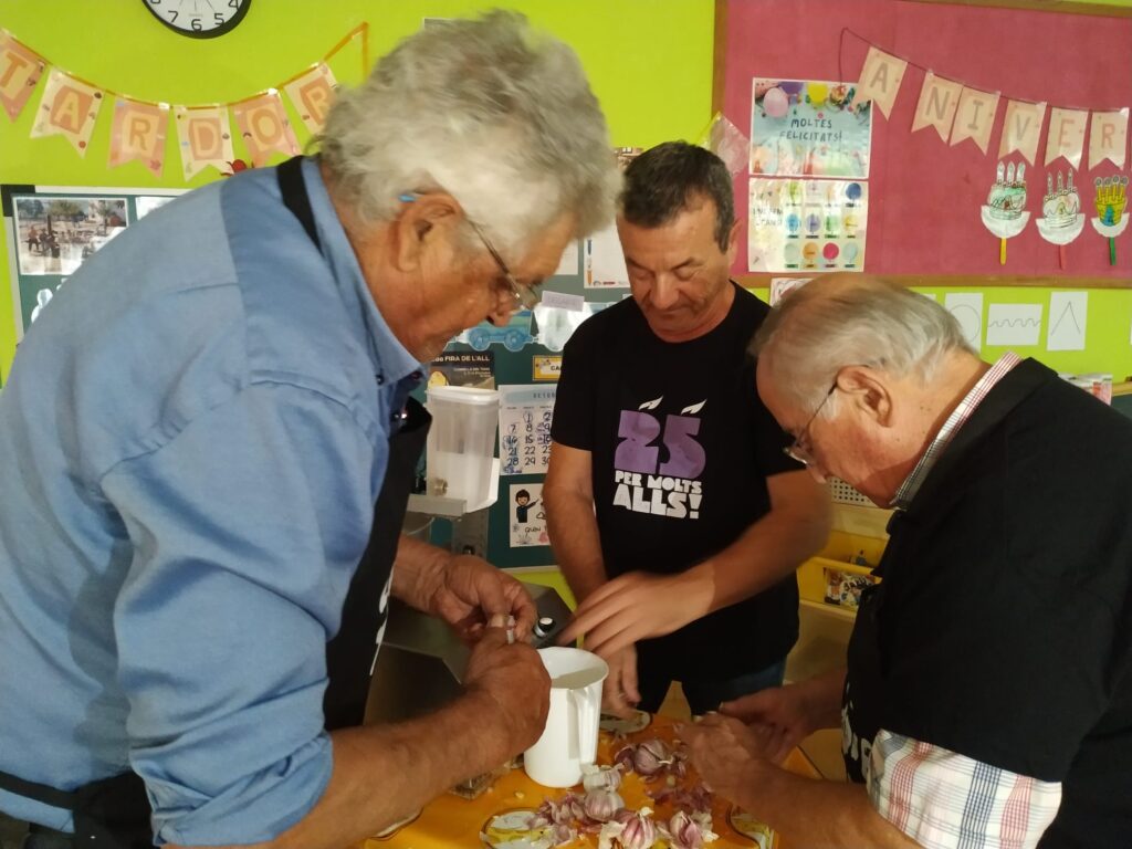 A més, en Josep M., en Josep i en Josep M., ens han ensenyat a fer allioli amb una màquina ideada per en Rafel Arangua, un enginyer que va fer moltíssimes proves abans d’aconseguir-la. Volíem tastar-lo però…, ens han aconsellat no fer-ho ja que resulta molt i molt picant! Moltes gràcies per aquesta “experiència culinària”!