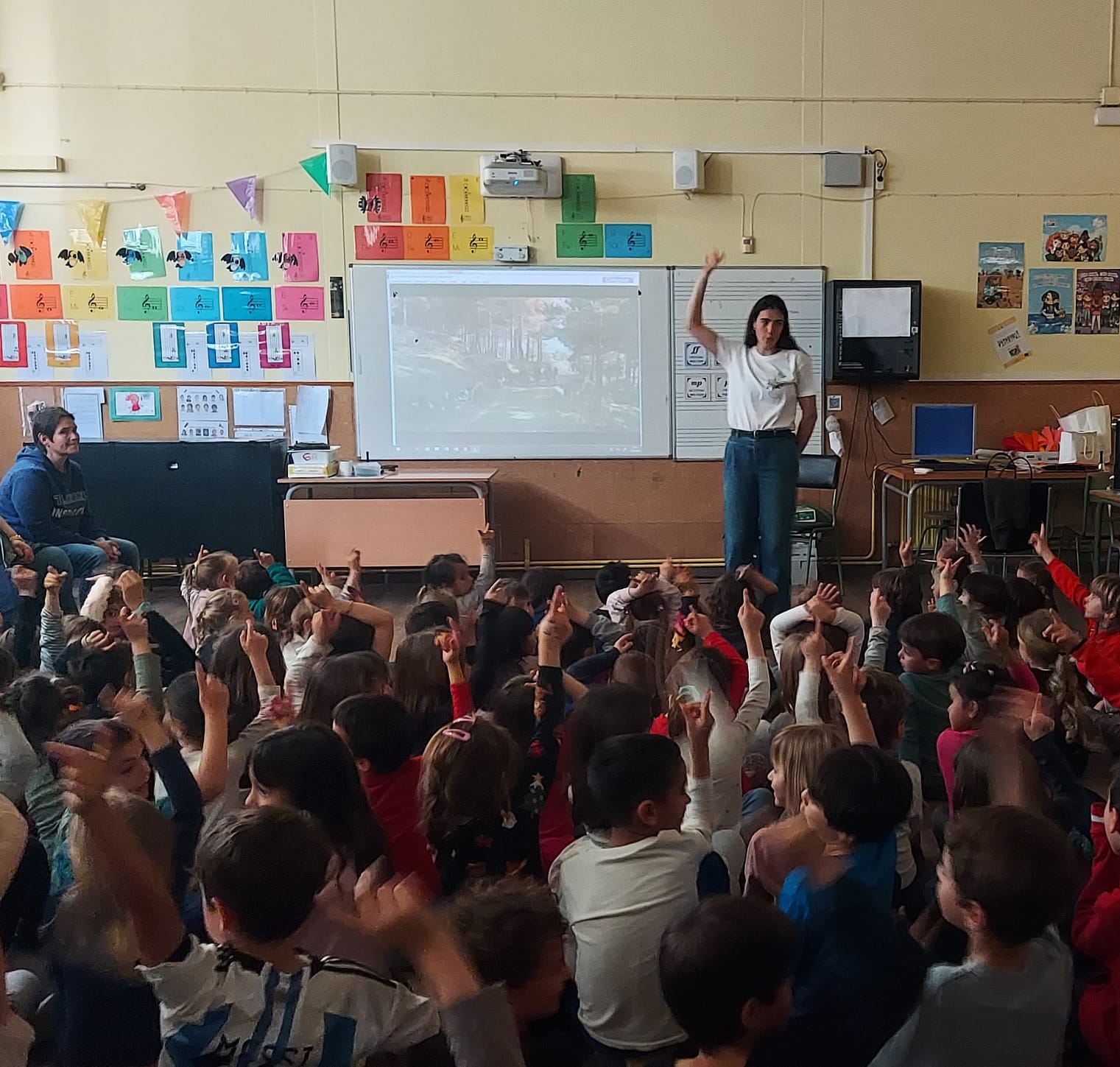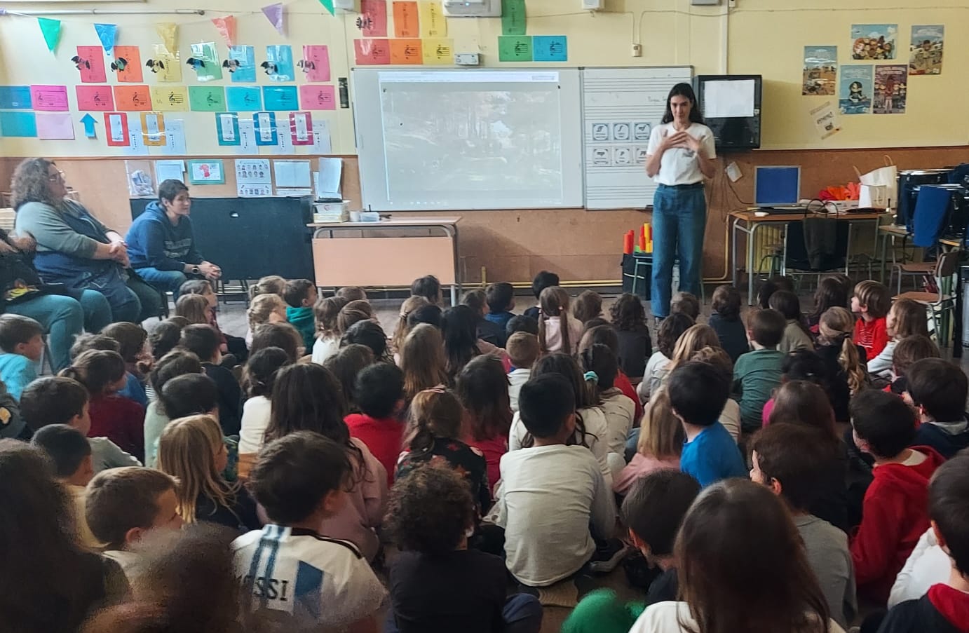Avui la Naua, directora del migmetratge Aya, ha vingut a la nostra escola a explicar-nos aspectes interessants relacionats amb el rodatge i hem tingut l’oportunitat de veure algun fragment! Tot plegat ens ha fet especial il·lusió perquè, en la filmació, a més, hi ha participat una família de l’escola! Mariona i Mateu, sou uns artistes!!!