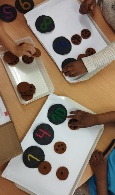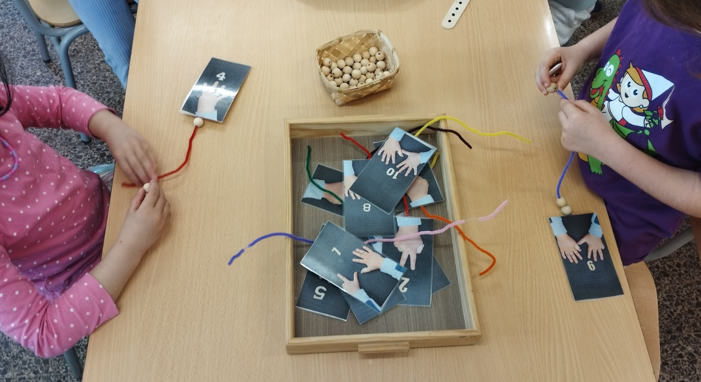Fent jocs de matemàtiques, de manera autònoma i manipulativa, estem començant a aprendre a fer descomposició, la noció de la quantitat, seriacions, figures geomètriques, seqüències temporals, ens iniciem en la tira numèrica …
