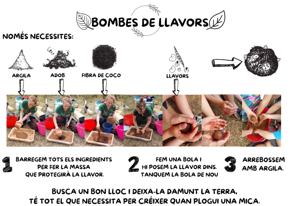 🌼 Us deixem algunes fotografies d’aquest dia tan especial i la recepta per fer Bombes de vida a casa o a l’escola. Us animem a provar-ho i continuar fent créixer la natura entre tots i totes.