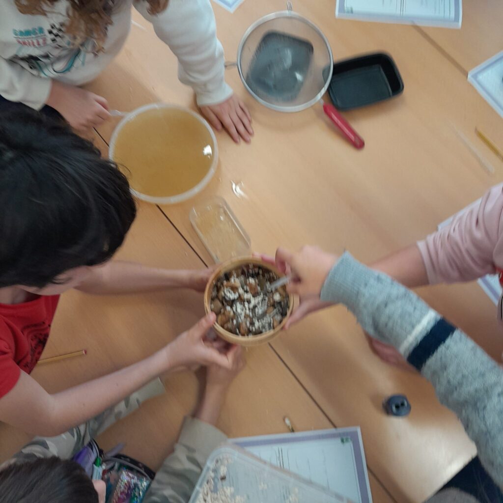 L’alumnat de 5è experimenta amb “una sopa alienígena” Feu un comentari / Per admin / 13 de març de 2024 / 5è General Portada Primària Hem posat en pràctica maneres de separar les mescles, tant homogènies, com heterogènies. Aquesta activitat l’hem pogut dur a terme gràcies a la participació de la Marta, la companya de pràctiques.