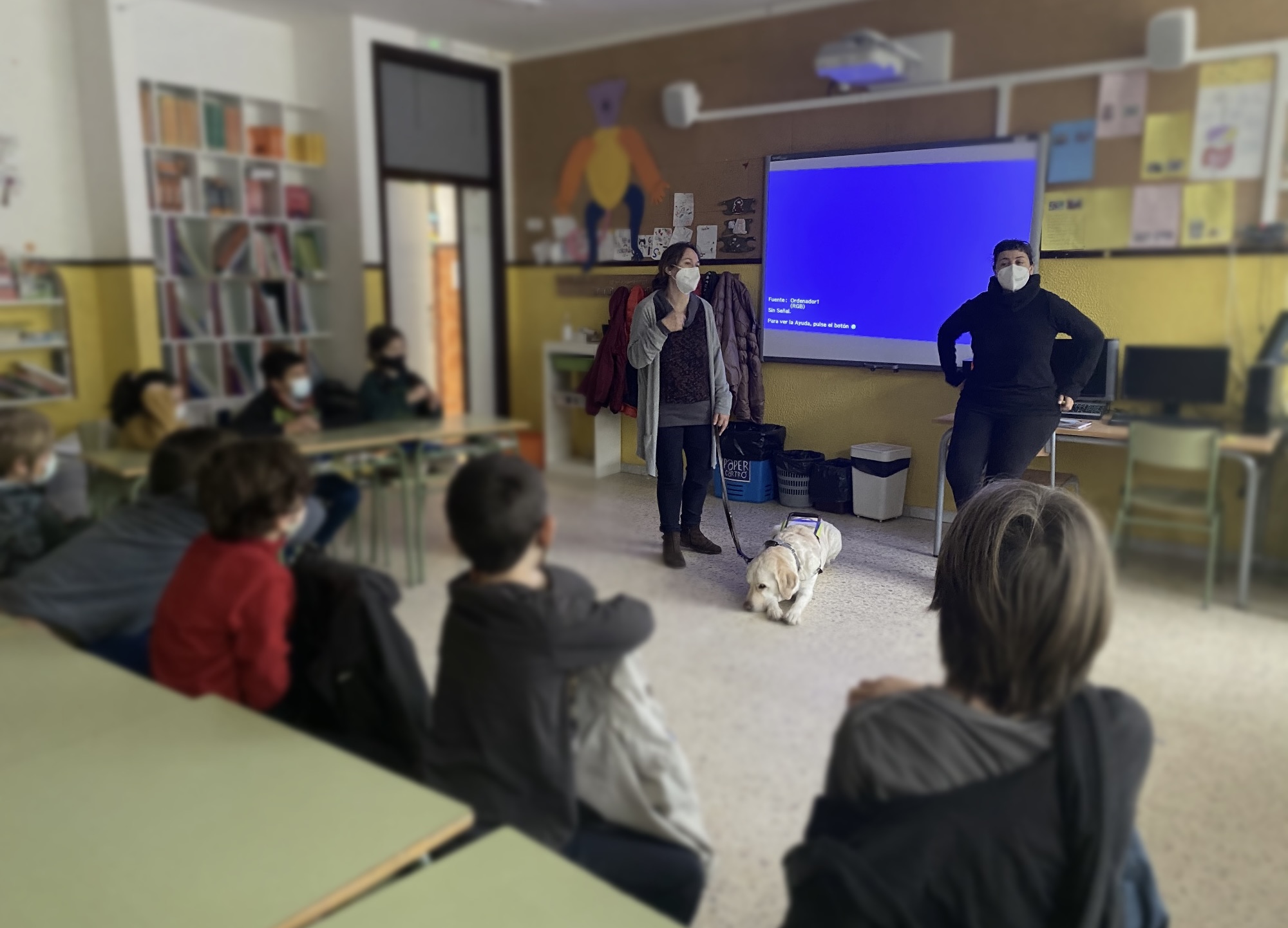 El primer taller es deia “AMB ULLS DE GOS”, on vam conèixer com és el dia a dia d’una persona amb discapacitat visual des de la perspectiva del gos pigall, a través d’un audiollibre i altres activitats.