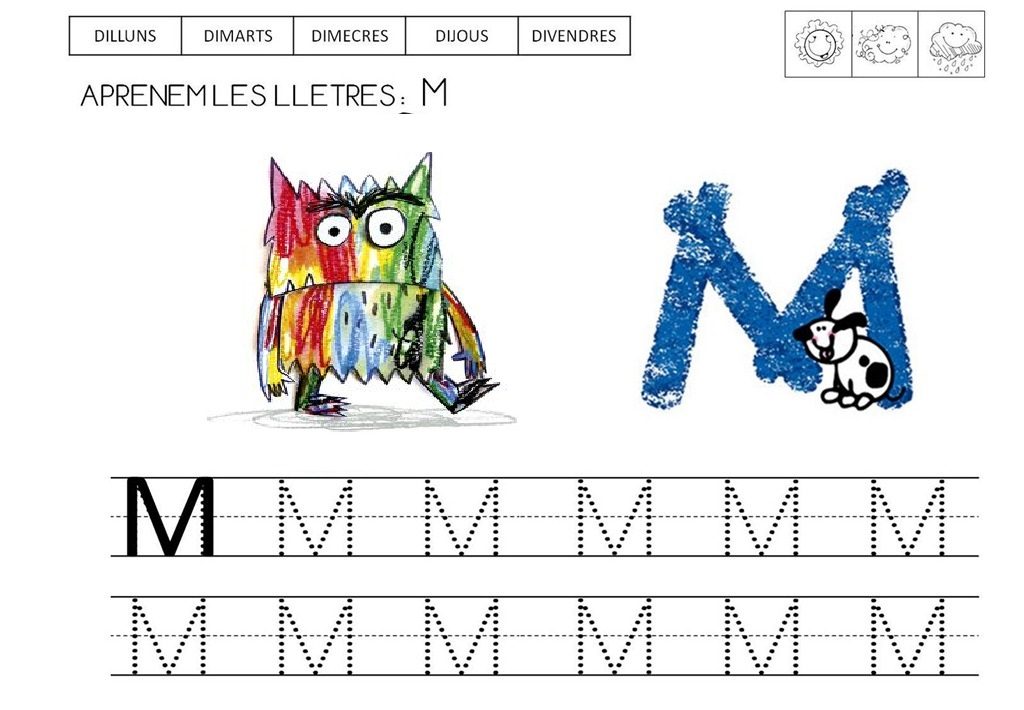 Avui m’acomiado amb una mica de feinetes. Us deixo dues fitxes de la lletra M de Monstre! feu clic a sobre i les podreu descarregar.