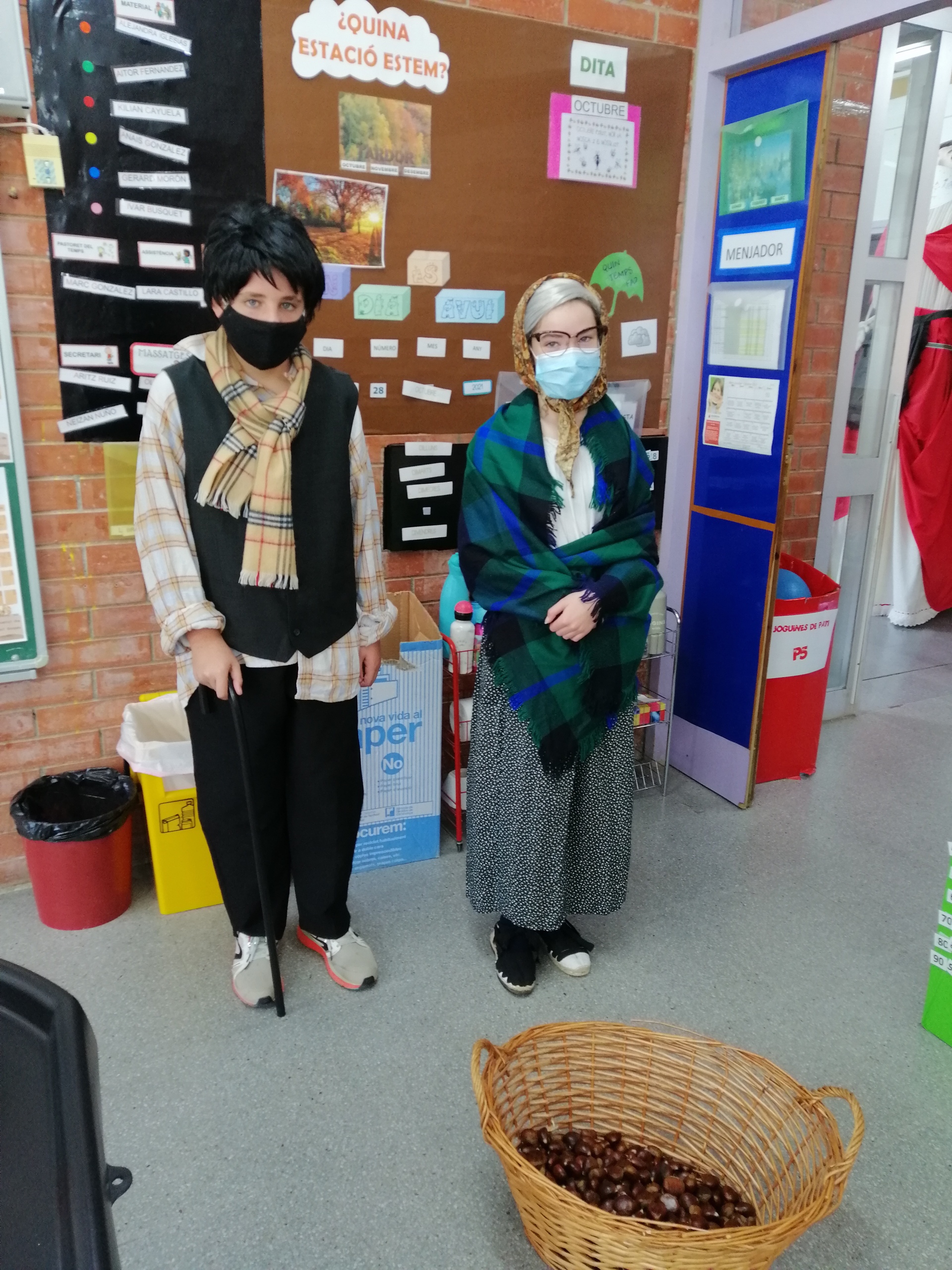 HAN ENTRAT EL CASTANYER I LA CASTANYERA QUE ENS PORTAVEN CASTANYES PER CELEBRAR LA CASTANYADA A L’ESCOLA.