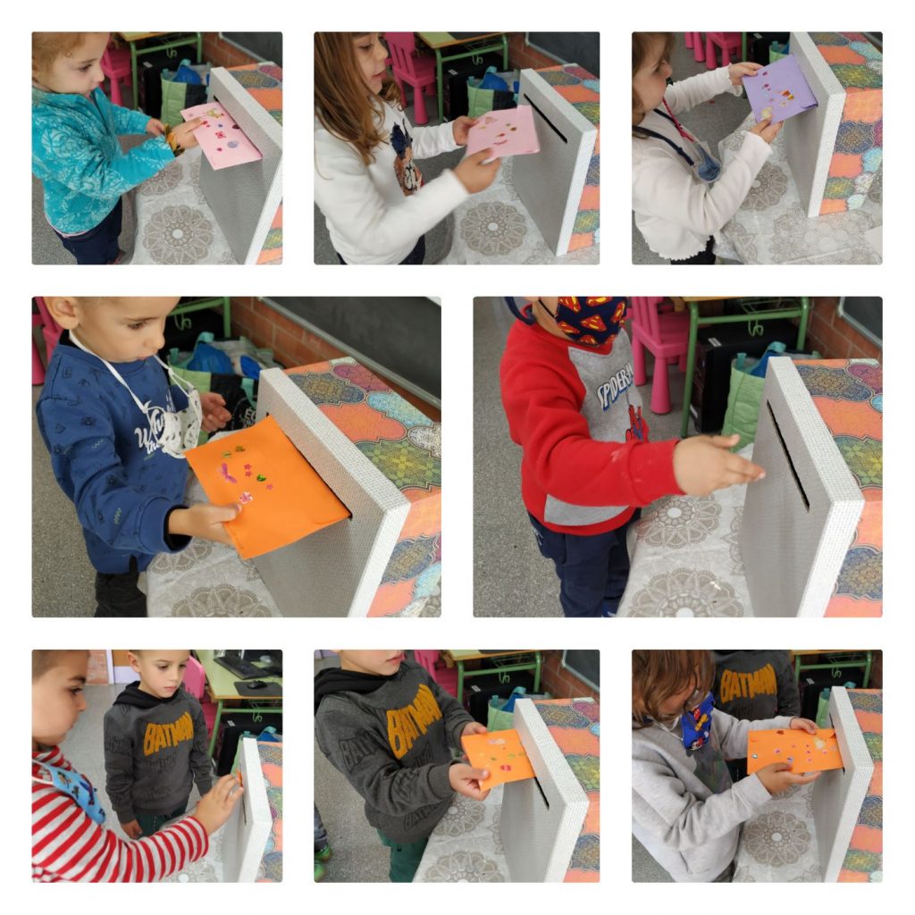 El conte que va portar el Gerard ens ha motivat a fer les nostres cartes, aquesta vegada l’hem fet amb un activitat guiada, per saber com fer servir la bústia de la classe. Hem decidit que la bústia es queda a l’aula per si algú vol escriure o fer una nota lliurement i al final de la setmana obrir-la per repartir el correu acumulat.