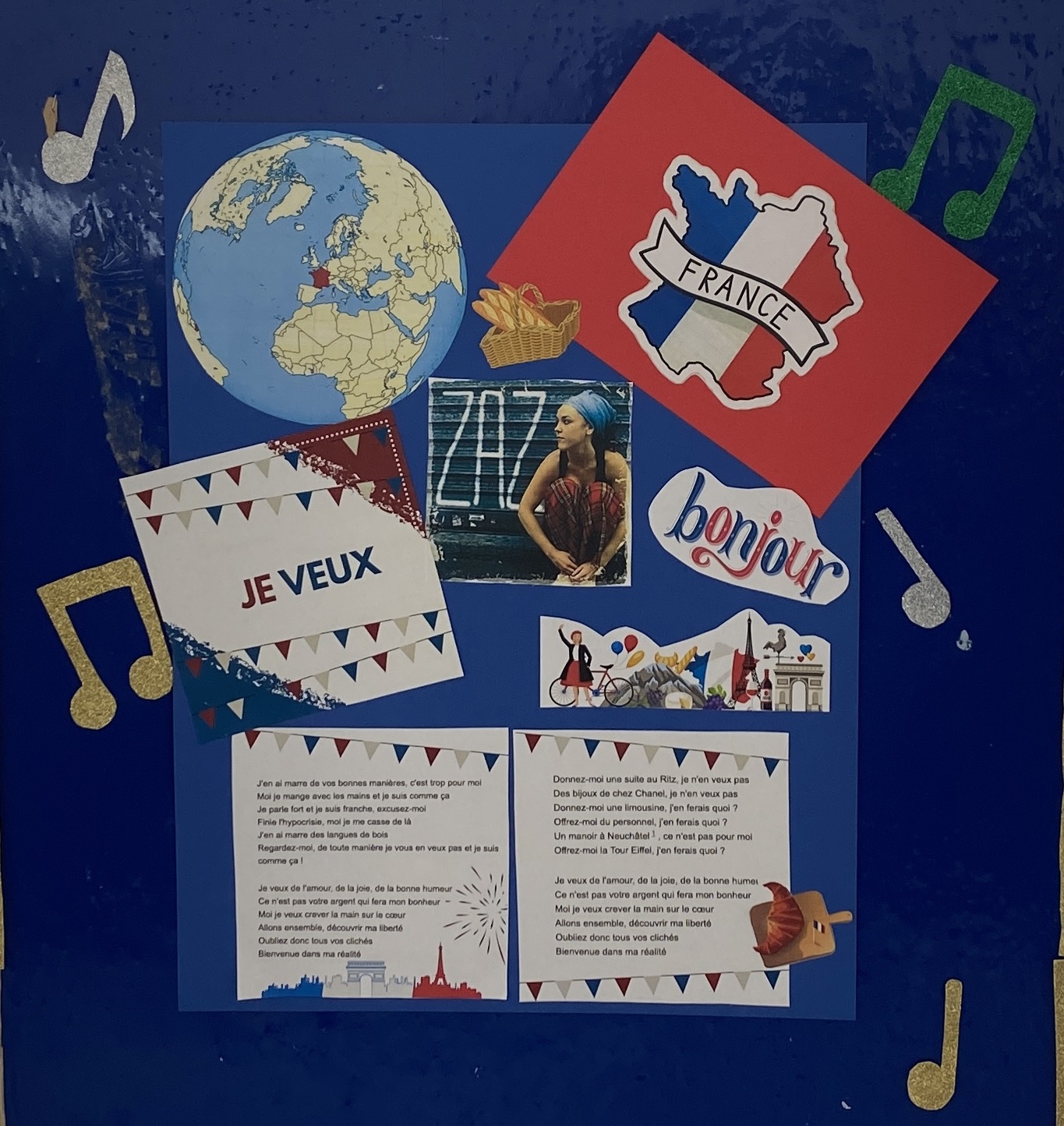 Iniciem setmana i blog, i ho fem amb la cançó “Je veux” que escoltarem durant tota aquesta setmana com a fil musical de l’escola. Es tracta d’una cançó francesa de la cantant Zaz i ens parla de com rebutja els valors materials com el luxe i les posessions, perquè ella el què vol és l’amor, la felicitat i el bon humor.