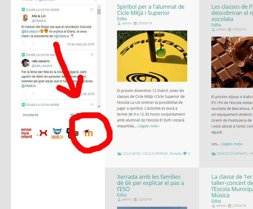 L’antiga web de l’escola feta amb Moodle encara estarà activa fins a finals d’aquest curs 2018-2019 i es pot consultar mitjançant la icona