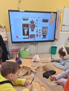 Un dels moments més enriquidors del projecte ha estat el treball d’investigació que hem realitzat a casa. Cada infant ha escollit un aspecte relacionat amb l’Antiga Grècia (els déus i deesses, les cases, la roba, els jocs, les olimpíades…) i l’ha investigat amb l’ajuda de la família.