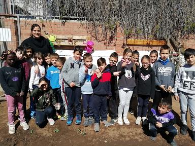 Avui, m’han convidat a les seves classes perquè tenien un tresor que volien compartir. Han estat parlant de plantes amb les seves tutores i els hi havien crescut unes mongetes que volien transplantar a l, hort de l’escola.