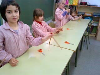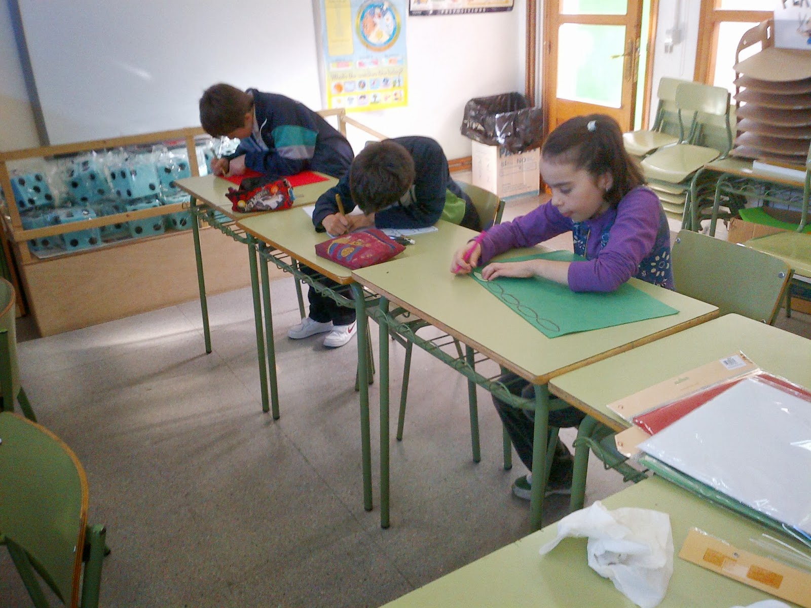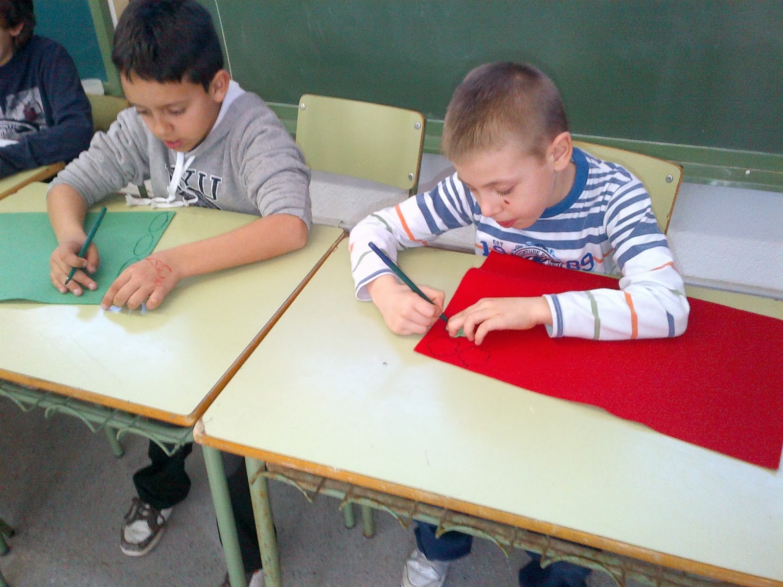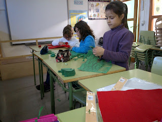 Els alumnes de CM i CS fent agulles de pit amb feltre.