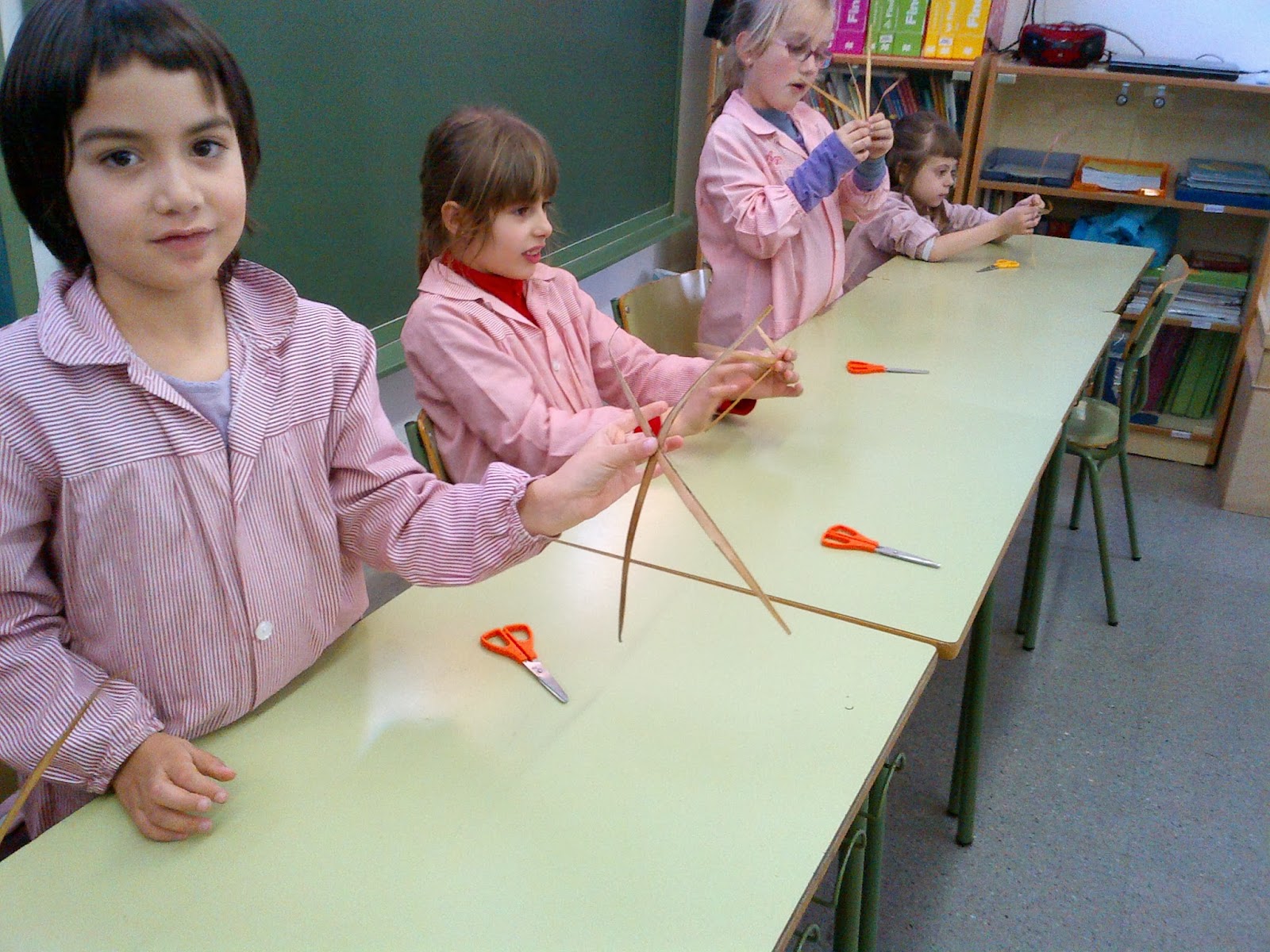 Els alumnes de CS fent punts de llibre i cabres de pauma.