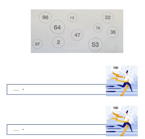 C-Amb aquests números es poden fer dos trams de 100 metres cadascun. Poseu-los en els trams de manera que sumin 100.