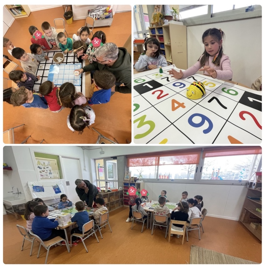 Per fer-ho més dinàmic, hem dividit la classe en dos grups: mentre uns exploraven el Tale-Bot, els altres jugaven amb el Bee-Bot, un vell conegut de l’aula. A més, hem començat amb activitats de programació desendollada per entendre conceptes bàsics abans d’interactuar amb els robots. Després, hem fet un intercanvi perquè tots els infants poguessin experimentar amb ambdós robots.