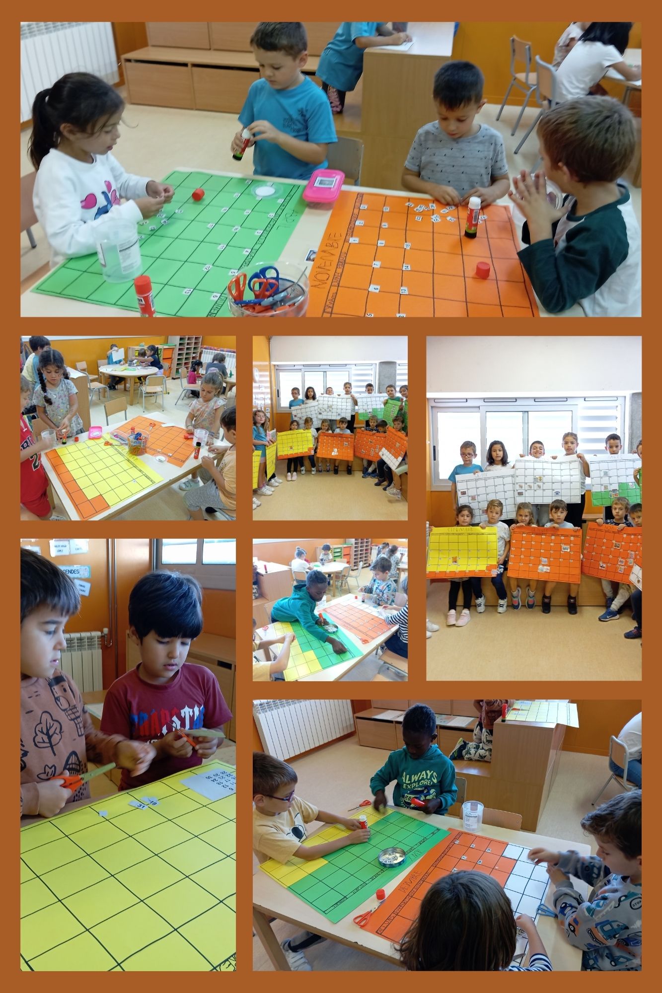 El pas del temps és important, més important encara és saber situar-nos-hi, sent conscients de l’evolució i els canvis que aquest fet implica. Per aquesta raó ens hem organitzat per parelles i així poder construir un mes cadascuna. Hem escrit el nom del mes, els dies de la setmana, hi hem enganxat els nombres corresponents a cada dia, fixant-nos molt bé en quin dia de la setmana comença cada més; hem pres consciència de quan comença i acaba cada estació meteorològica, i hem pogut recordar i descobrir les festes que se celebren a cada més, i encara més important, els dies dels nostres aniversaris.