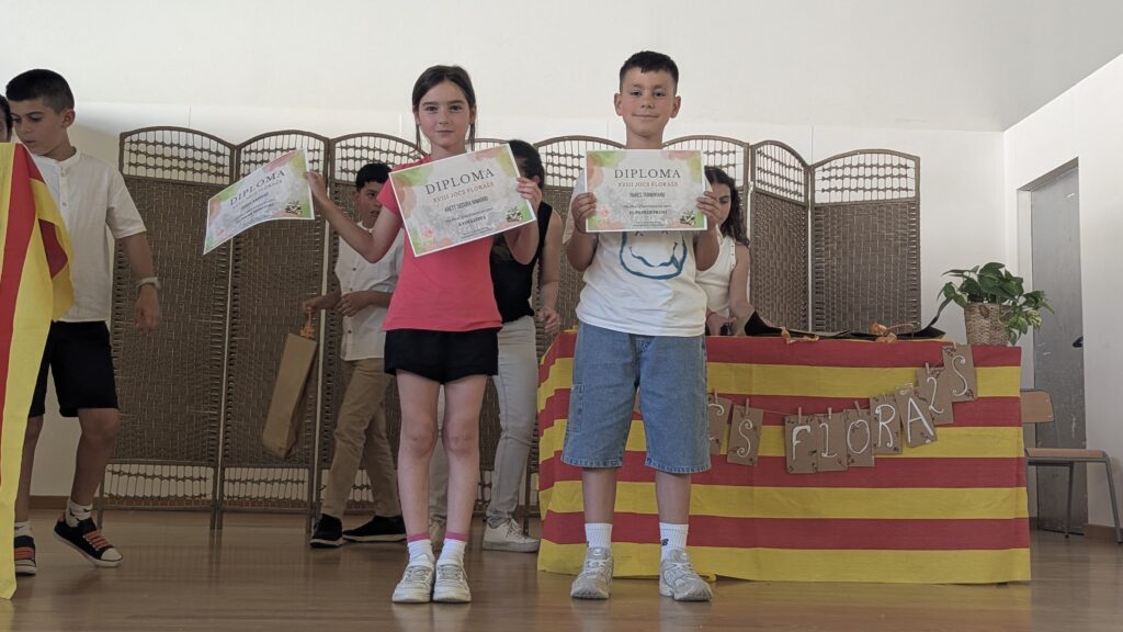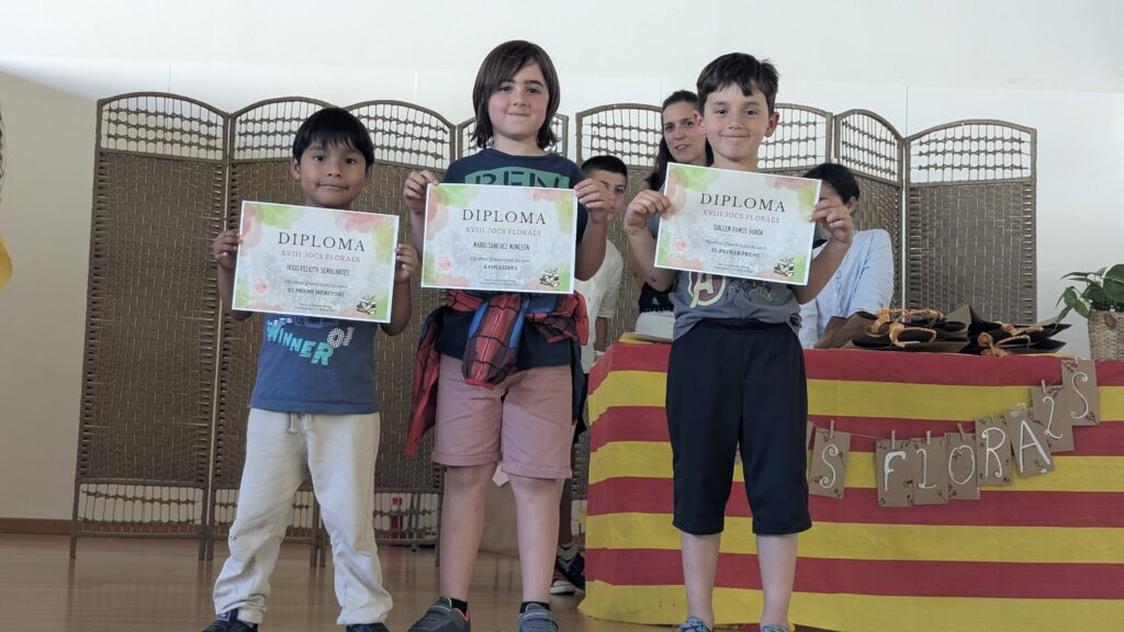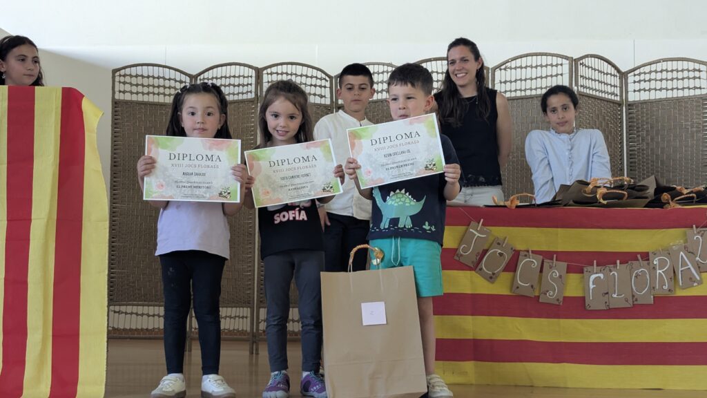Els Jocs Florals són un dels actes més especials i esperats de la Diada de Sant Jordi a l’escola. Cada any, tot l’alumnat participa en aquest certamen literari a través d’obres de categories ben diverses, segons el nivell on es troben: rodolins, cal·ligrames, poemes, faules, contes, còmics…
