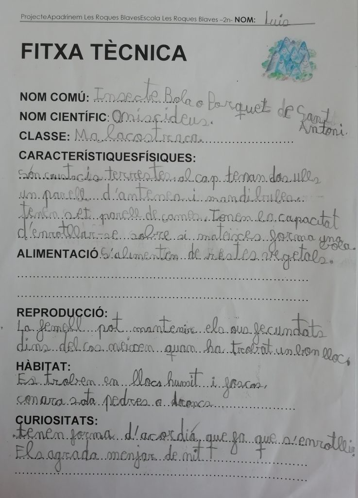 El projecte de l’Apadrinem Les Roques Blaves de la classe de 2n ha consistit en cercar, seleccionar i identificar informació sobre els rèptils, aràcnids, amfibis i insectes de l’entorn de les Roques Blaves.