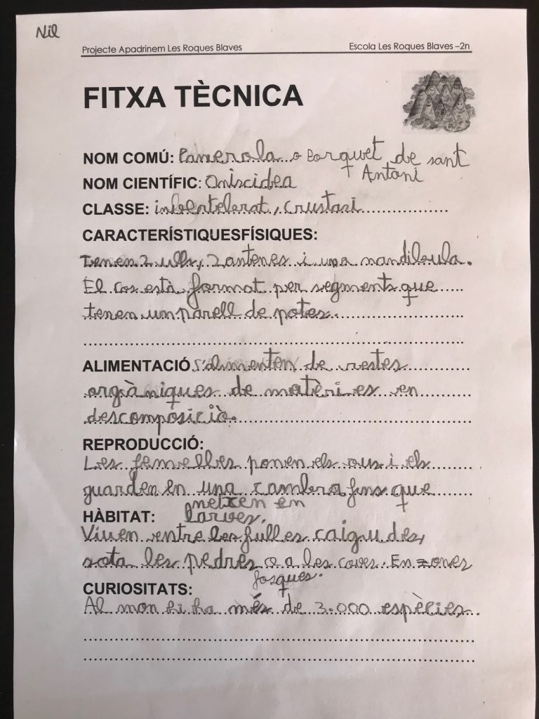 Normalment ho treballem en grup, però aquest curs ho hem fet en el període de confinament pel Covid19. Hem disposat dels materials de consulta online i cadascú hem triat l’animal que ens ha semblat més interessant.