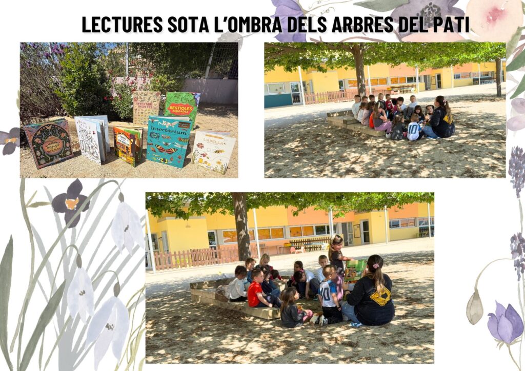 Hem fet moltes d’aquestes lectures a l’aire lliure, sota l’ombra dels arbres del pati, creant un espai relaxat que ha convidat a escoltar, parlar i compartir idees. Amb cada sessió, anem aprenent més i imaginant com podem fer del nostre jardí un lloc ideal per rebre marietes, papallones, abelles i altres insectes que fan molt de bé.