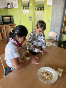 A més, al llarg de la setmana, els diferents grups entre I3 i 2n van baixar a la cuina de l’escola per elaborar els tradicionals panellets. Els infants van gaudir molt d’aquesta experiència: mesurant, pastant, fent boletes i decorant amb ametlles, coco o xocolata. Els passadissos es van omplir d’olors dolces pròpies de la tardor.
