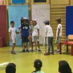 Finalment s’ha fet una representació teatral que els ha ajudat a potenciar les capacitats comunicatives, l’expressió oral en llengua castellana, la memorització i l’expressió corporal.