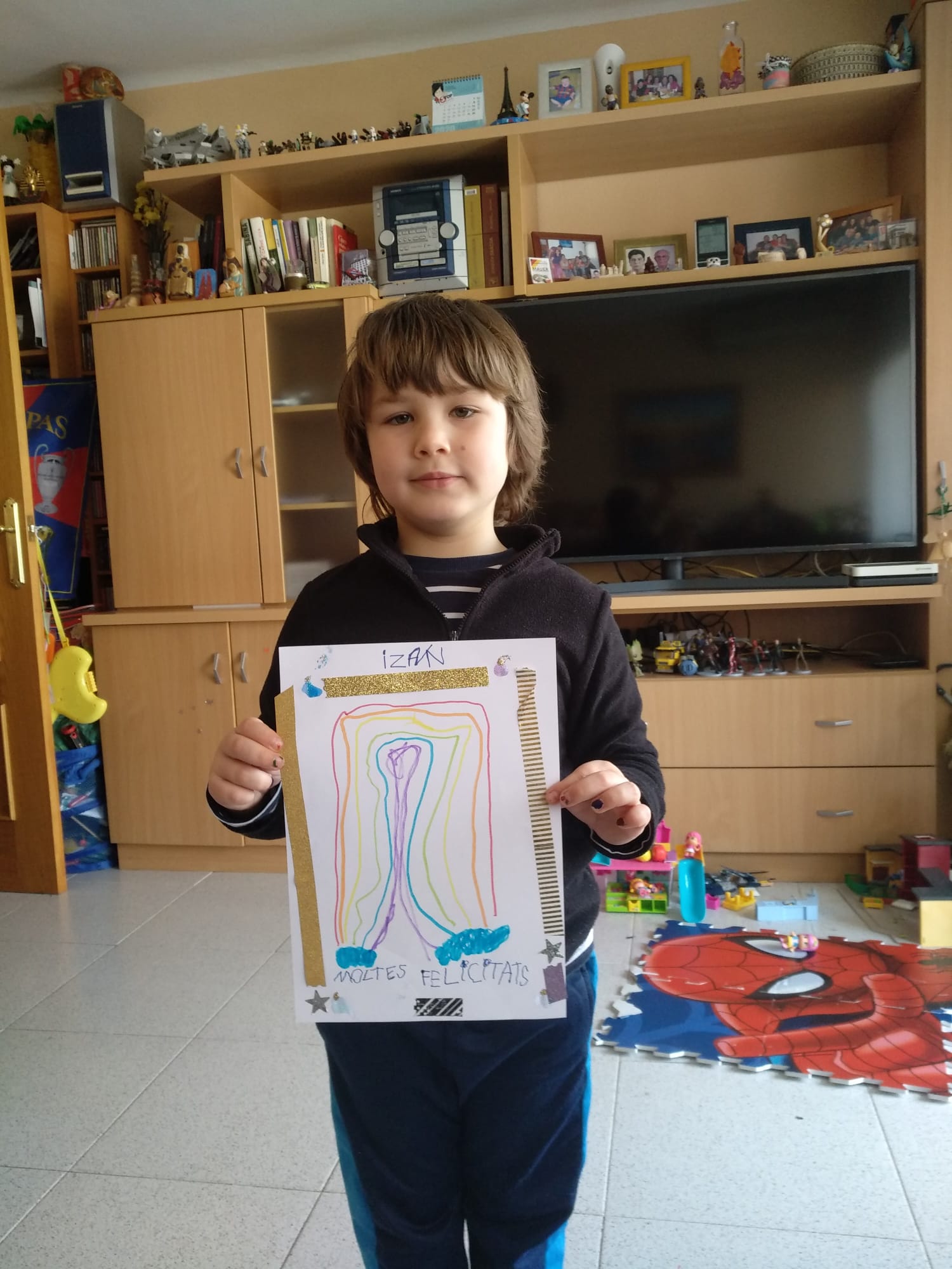 Ahir el nostre company IZAN LEÓN de la classe de Gaudí va fer 6 anys i com que no ho ha pogut celebrar amb els seus companys, els nens i nenes de P5 li han felicitat l’aniversari d’una manera molt especial: