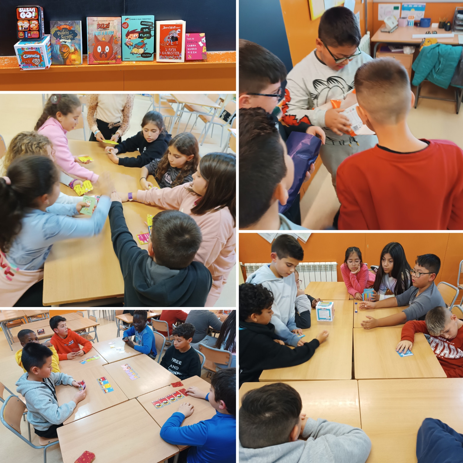 A la nostra classe ens han portat llibres de lectura per a la biblioteca d’aula i  jocs de taula. Alguns companys afortunats ja han començat a llegir els llibres però amb els jocs hi hem jugat tots.