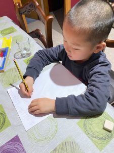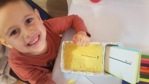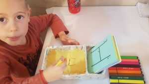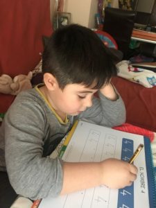 - L’Unai practicant la grafia de les lletres