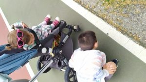 - l’Àlex de passeig amb patinete i portant protecció