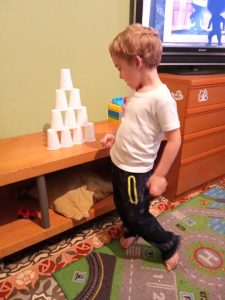 - El Daniel fa una torre amb gots de plàstic