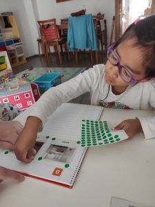 - La Daniela treballant les lletres en el seu abecedari