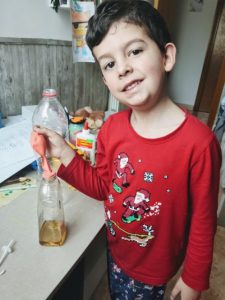 - El Julen amb el muntatge del circuit d’ampolles