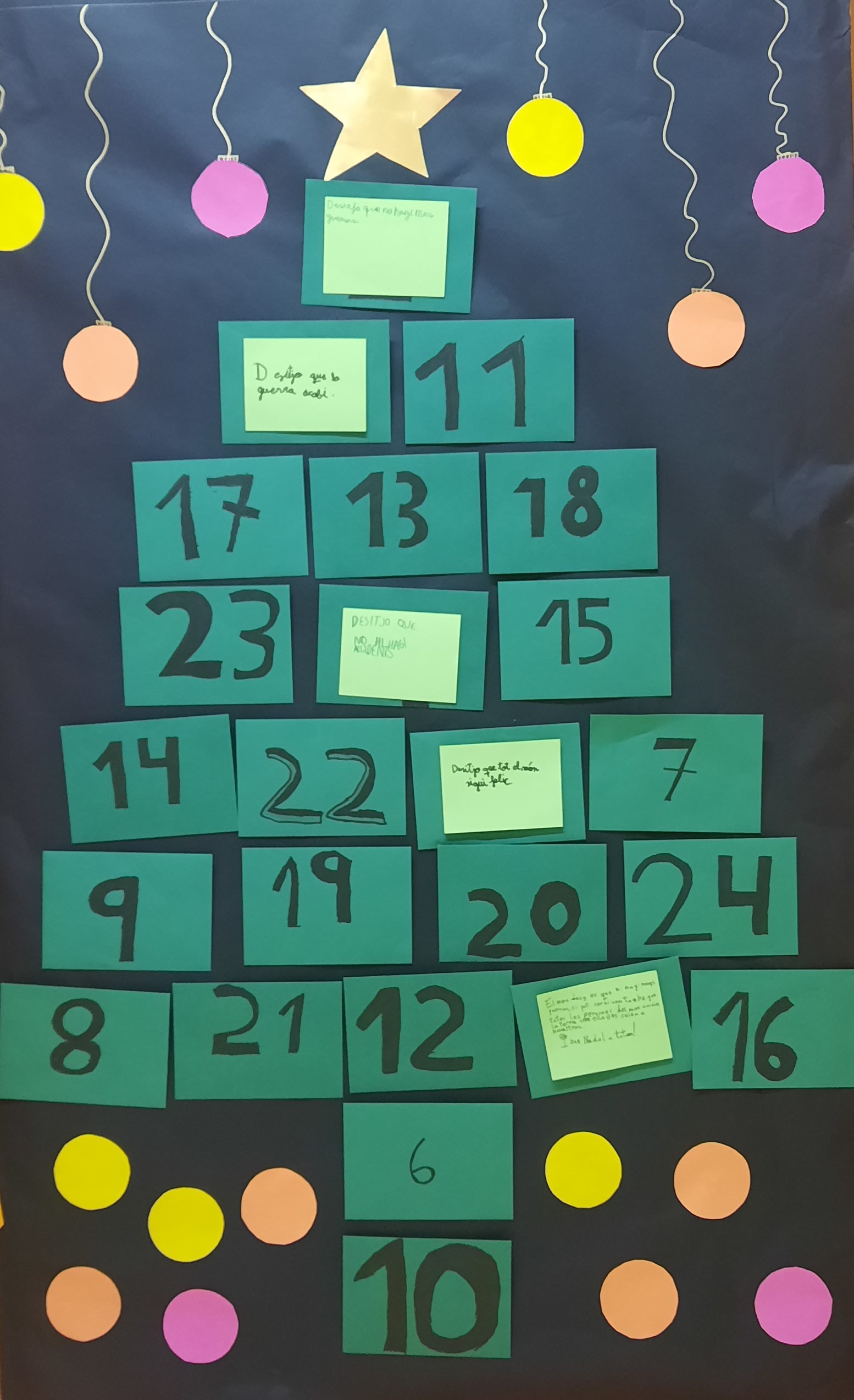 Ja tenim a tocar Nadal, i per celebrar-ho, aquest any hem creat una activitat molt especial: un calendari d’advent ple de desitjos. Vint-i-quatre sobres, un per a cadascun de nosaltres; vint-i-quatre desitjos, un per a cada dia fins a arribar a Nadal. Cada desig ha estat escrit amb il·lusió, i convida a reflexionar sobre l’amistat, la generositat i l’amor. I il·lusió, molta il·lusió! Que mai ens falti la il·lusió!