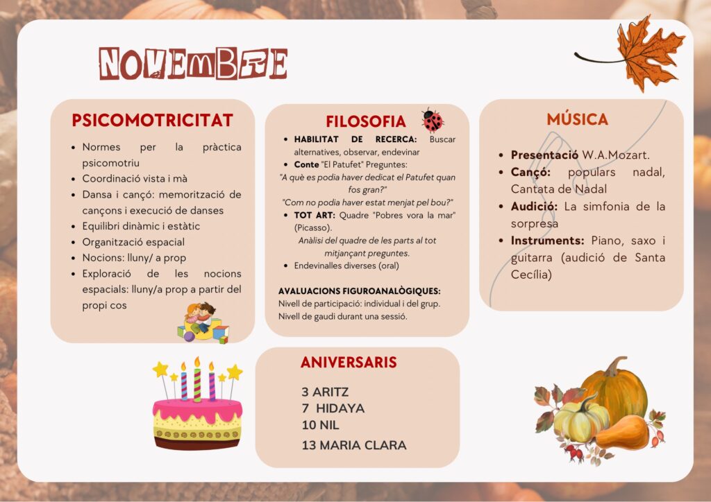 COMUNICACIÓ MENSUAL NOVEMBRE Administrador Intranet08/11/24 Benvolgudes famílies , Aquí teniu el comunicat mensual del que es portarà a terme durant el mes de novembre a la classe d’I4.