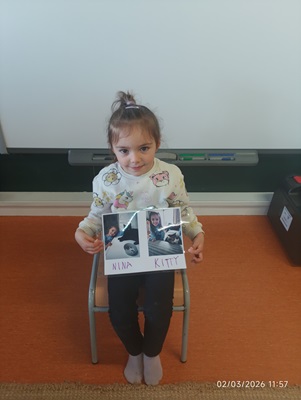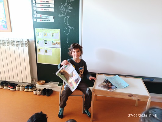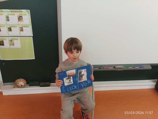 A la classe hem iniciat les exposicions orals en relació a les mascotes. Cada nen o nena participa amb el suport de la seva família que ens ha fet arribar fotografies o algunes ho han preparat en lagun suport físic de paper o cartolina i han escrit també el nom propi de la mascota. A una part de l’aula anem exposant tot el material visual i servirà per anar fent el mapa visual d’idees i la connexió amb altres preguntes que vagin sorgint al llarg del procés del Projecte.