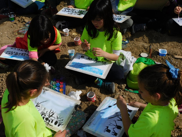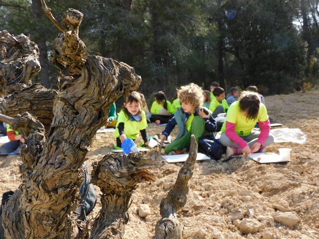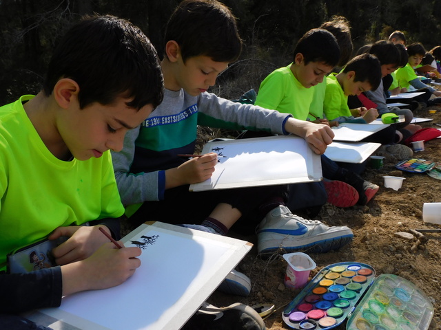 La comunitat de mitjans vam fer una sortida artística. A primera hora vam anar fins al pèlag sec on vam jugar i esmorzar. Després vam seguir caminant fins a arribar a la vinya que volíem pintar. En aquest cas, vam pintar el paisatge de la vinya utilitzant tinta xinesa i aquarel·la.