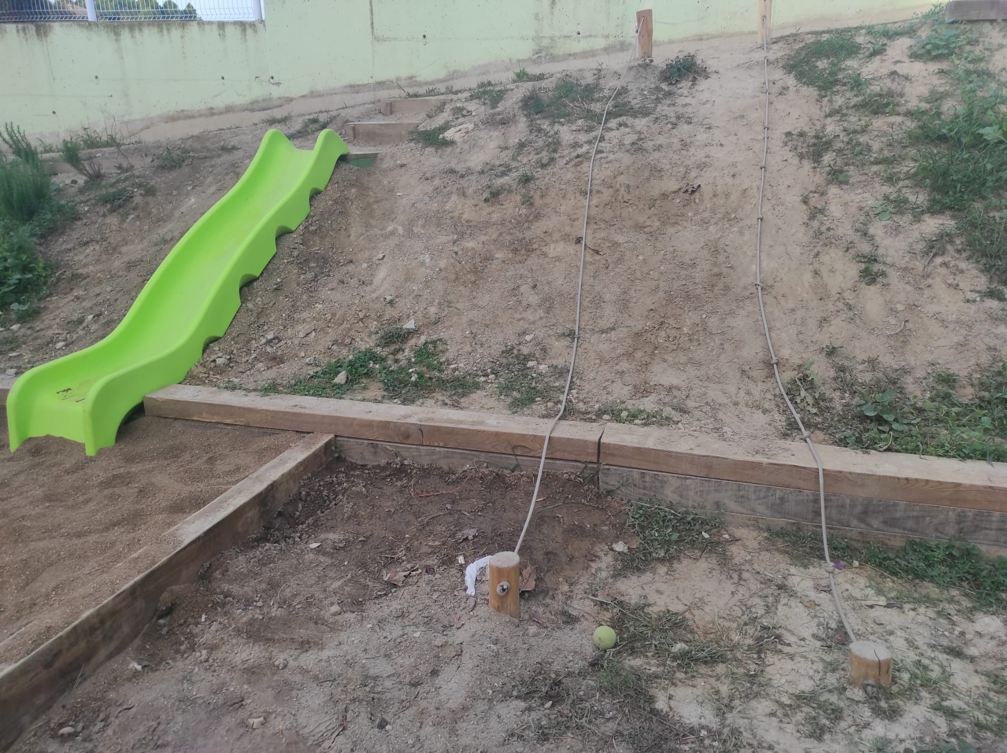 ESTRENEM NOVA ZONA AL TALÚS Feu un comentari / Per Escola Llebeig / 2 d'octubre de 2022 / Escola que somiem General Portada Finalment ha sigut possible la instal·lació del tobogan i de les cordes a la zona del talús. Així continuem millorant els espais interiors i exteriors de l’escola per tal de fer de la nostra l’Escola que Somiem.