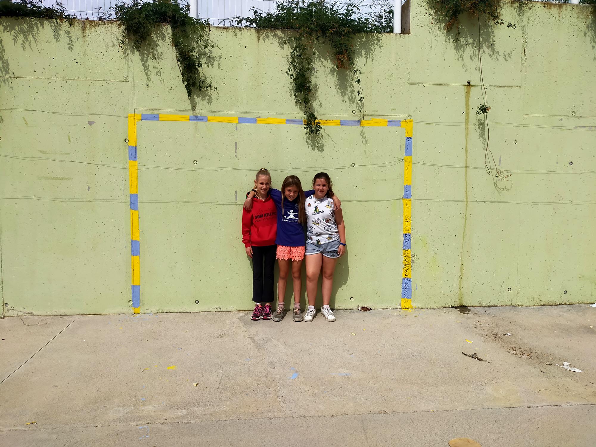 ♥ L’Ariadna, la Carla i l’Arés han aconseguit pintar una porteria a una paret del pati de l’escola!