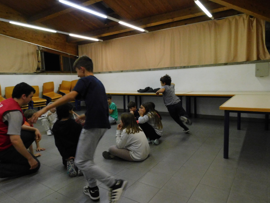 Cada nit vam fer jocs de nit. La primera nit ens vam dividir en cinc grups d’uns deu infants i anàvem passant per diferents espais de l’alberg. A cada espai fèiem un joc diferent, com ara: