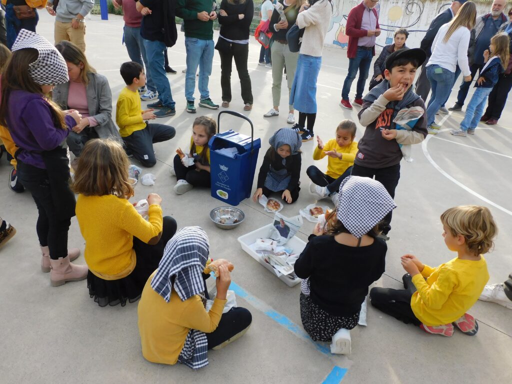 En acabar, l’AMPA ens va repartir castanyes i coca i xocolata per berenar.
