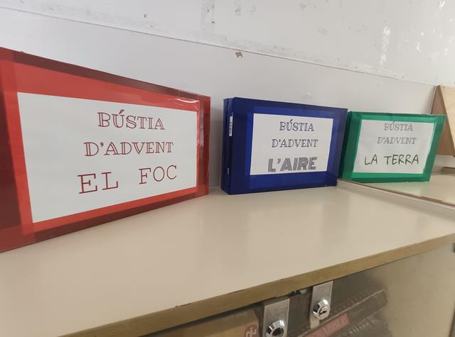 Per una banda, vam crear unes bústies d’advent per cada classe on els alumnes podien enviar missatges bonics, d’agraïment, d’afecte… a altres companys.