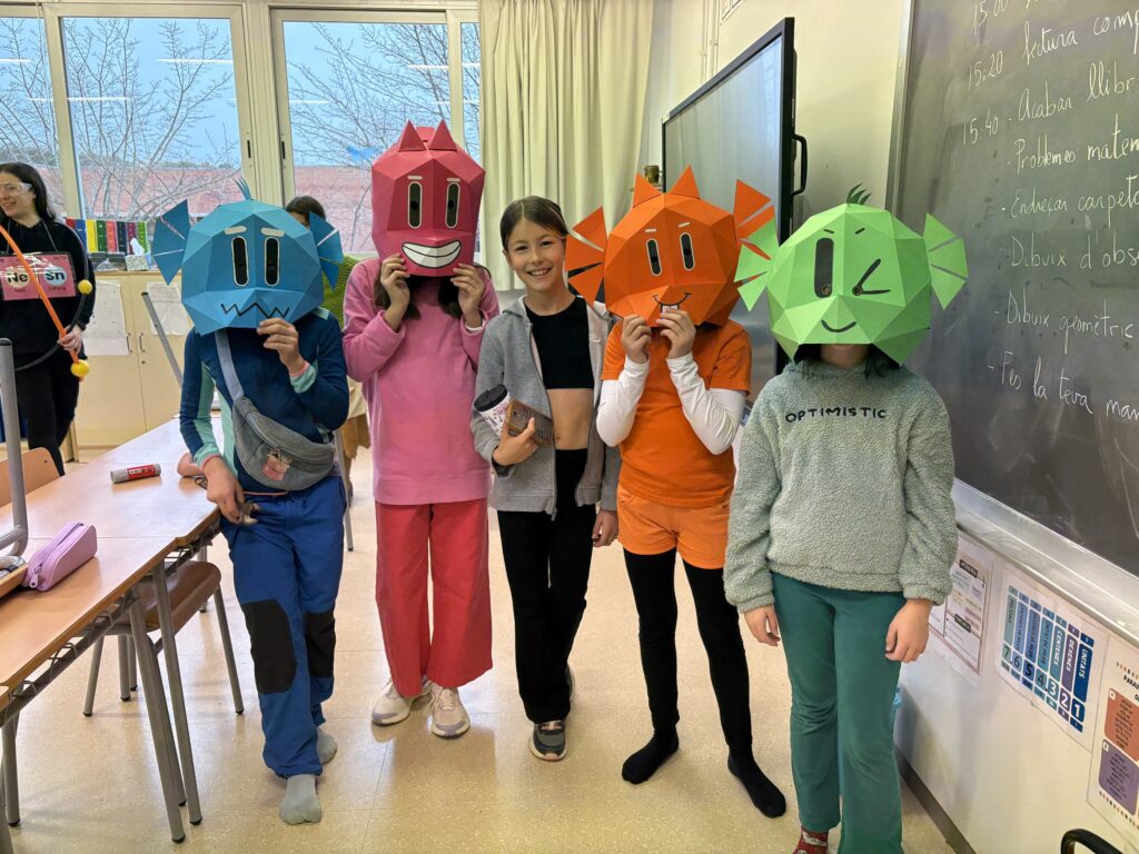 A l’escola Llebeig hem celebrat carnestoltes durant cinc dies. Cada dia els esbirros passen per les aules a dir-nos la consigna de l’endemà. Per saber la consigna de dilluns, passen el divendres i així fins dijous.