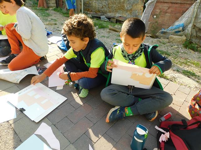 Va ser un matí ben complet ja que gràcies al taller vam poder observar detalls de les cases i els carrers per poder-los dibuixar sobre el paper. La Núria i el Lluís ens van ensenyar a utilitzar la tècnica del collage per representar el terra, les cases i el cel. Després de dibuixar amb estisores, vam acabar els detalls més petits amb retolador.