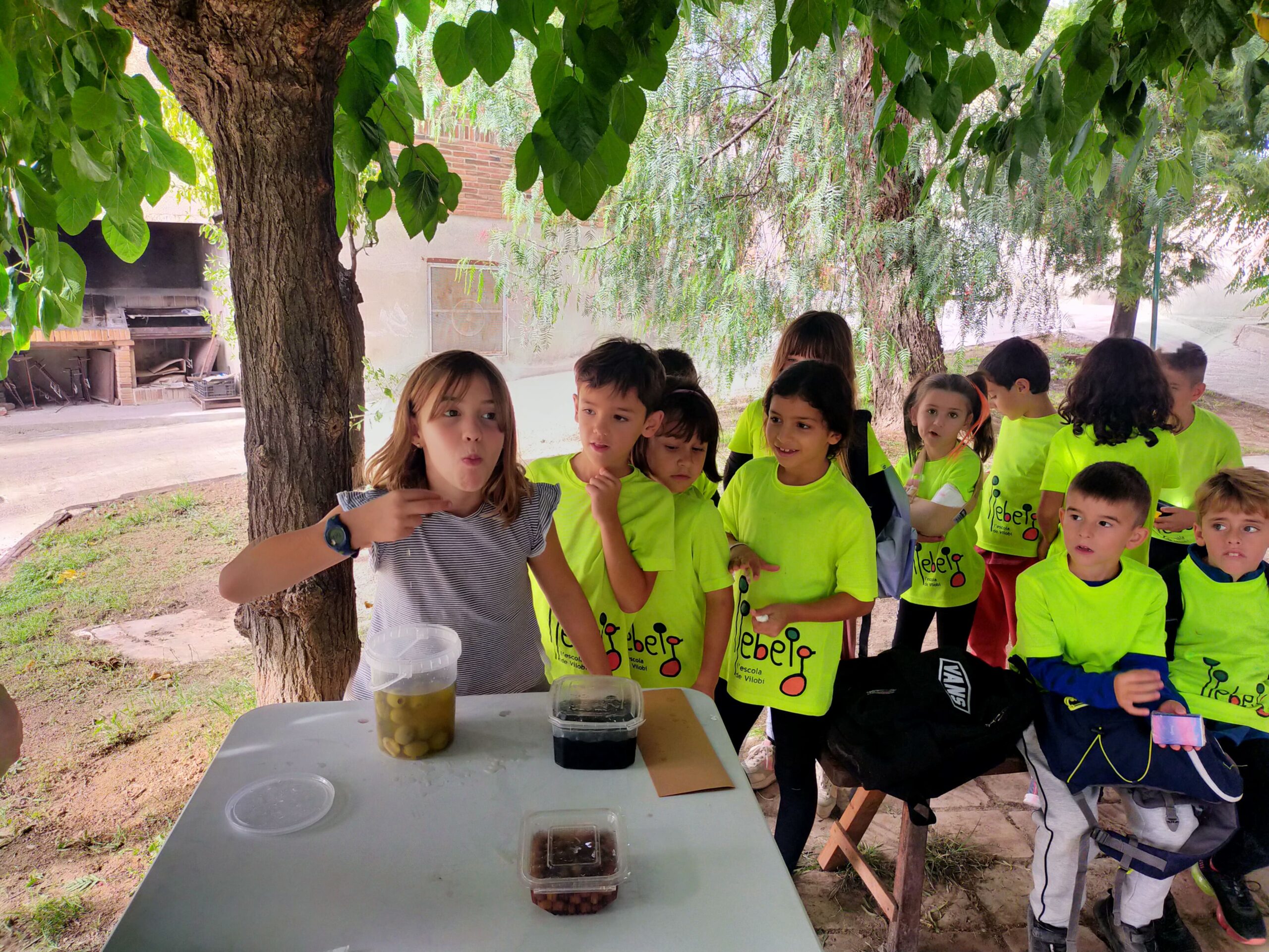 El dia 30 vam anar a collir olives. El Marc Vidal (pare de la Vinyet) ens va permetre conèixer de molt a prop tot el procés de la collita. Vam veure diferents maneres de collir i estris per fer-ho (el rasclet manual i elèctric, la vara, la màquina de collir i les borrasses entre d’altres), vam observar bé i vam collir les olives que després vam utilitzar per fer nosaltres mateixos la conserva.