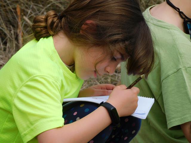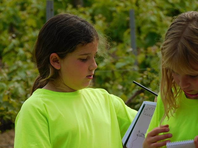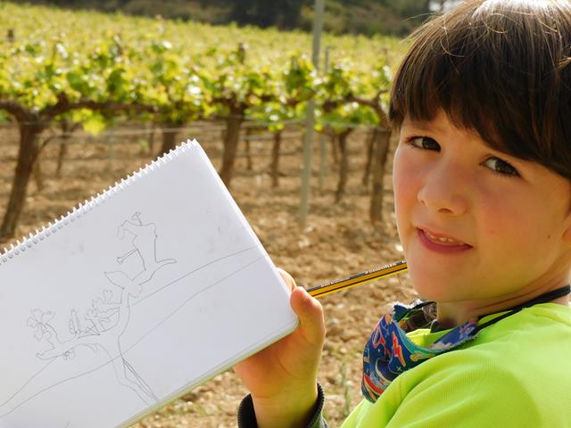 Després de caminar una estona i arribar als pèlags, vam dibuixar amb colors de fusta el paisatge de la vinya a la primavera.